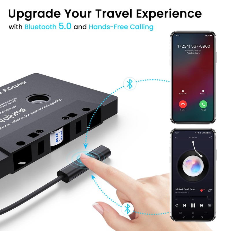 voijump Cassette Audio Bluetooth Adapter Receiver for Car, Wireless Cassette to AUX Adapter with Hands-Free Calling – Compatible with Old Car Stereo, Smartphone, MP3 Player