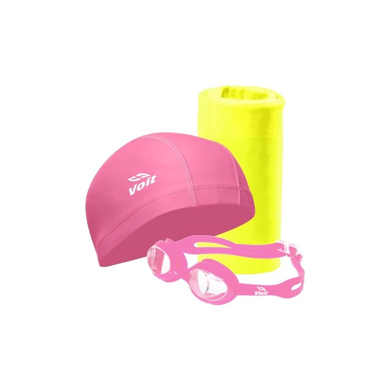 Voit Set de Natación para Bebé, Gorra de Poliuretano, Goggles de Silicón y Toalla PVA, Rosa, para 1 a 3 años