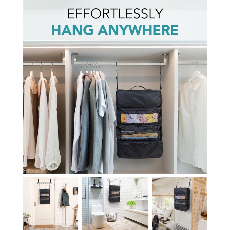 - Efficient and Versatile: You can easily pack a 10-day worth of clothes (note: summer clothes). Add a handle for easy portability; And hanging closet organizer 360°adjustable hook can be hung in any position to meet various storage needs
