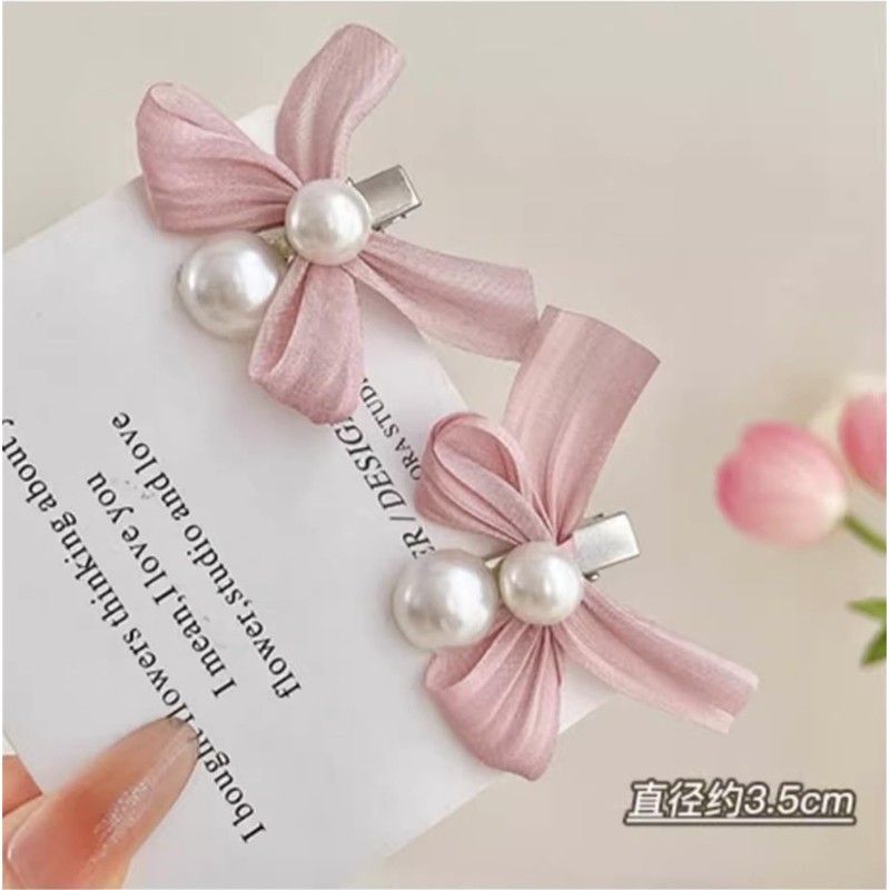 VOKLLIYU ヘアクリップ パールヘアピン 4個セット ヘアクリップ 髪留め 髪飾り 前髪 おしゃれ 可愛い レディース ヘアアクセサリー 日常使い パーティーにも最適(ピンク-4個 )