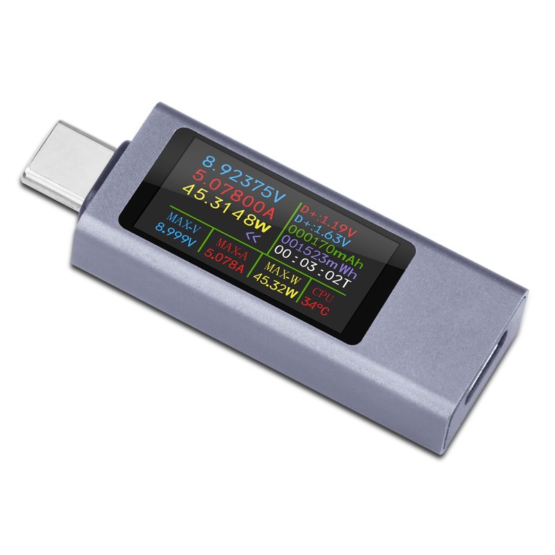 • Detect different fast charging protocols: the USB multimeter supports PD2.0/3.0, QC2.0/3.0, FCP. SCP, AFC, PE, DASH VOOC and Super VOOC protocol charging, but the name of the fast charging protocol is not displayed on the USB C tester.