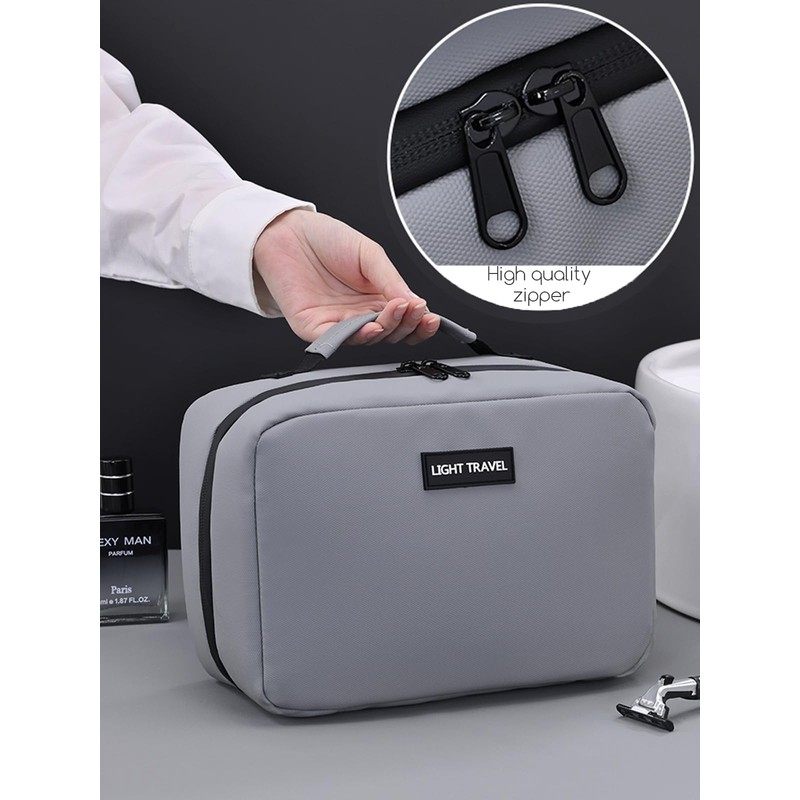 Large capacity: size 24 x 11 x 16 cm, spacious main compartment, can keep all your toiletries and shaving accessories organised, multiple pockets inside keep bottles upright, it is small when packed and does not take up much space in the suitcase.