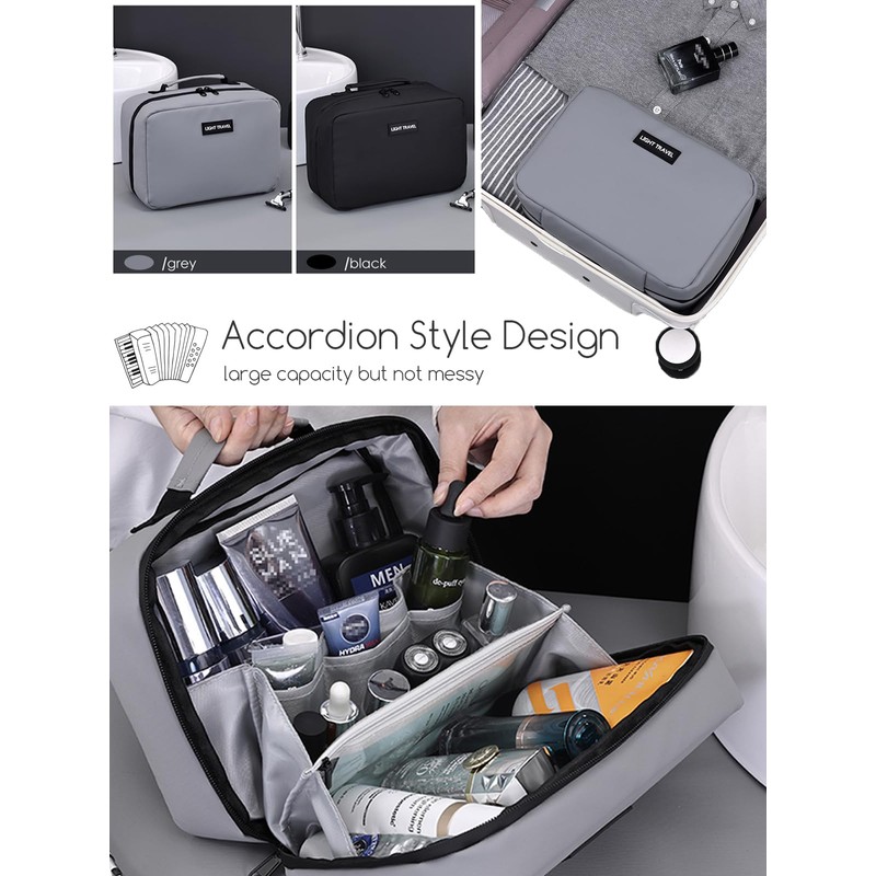 - Unique design: accordion-style toiletry bag, large opening zip that allows easy access to its inner contents, simply pull the connected zip to achieve full exposure.