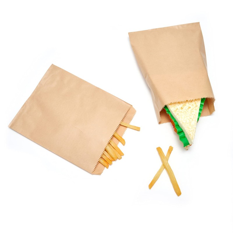 Volanic 100PCS 5X7 Inch Kraft Paper Bags Small Flat Party Favor Bag for Bakery Cookies Sandwich Soap Packing