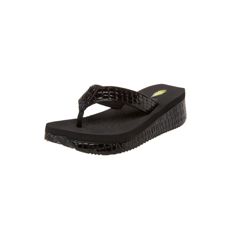 Volatile Women's Mini Croco Wedge Sandal, Black, 9 B US