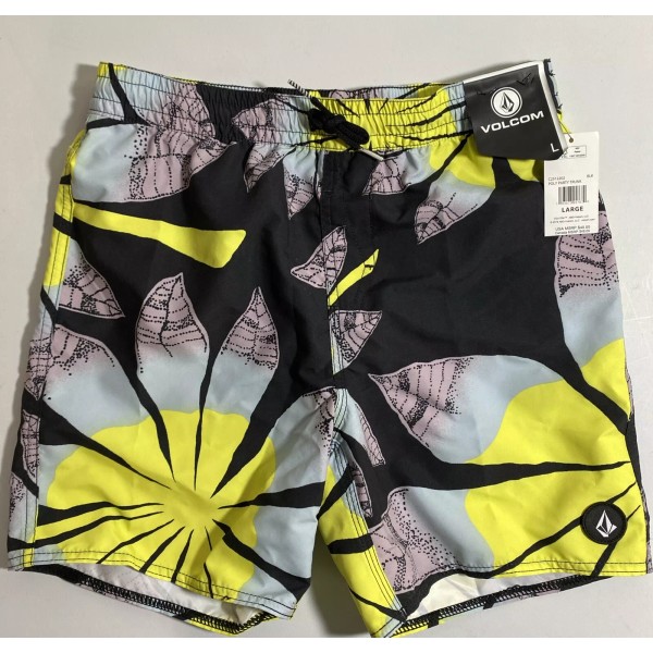 Volcom Boys Poly Party Swim Trunks, Black, Green & Yellow - Large - Brand New