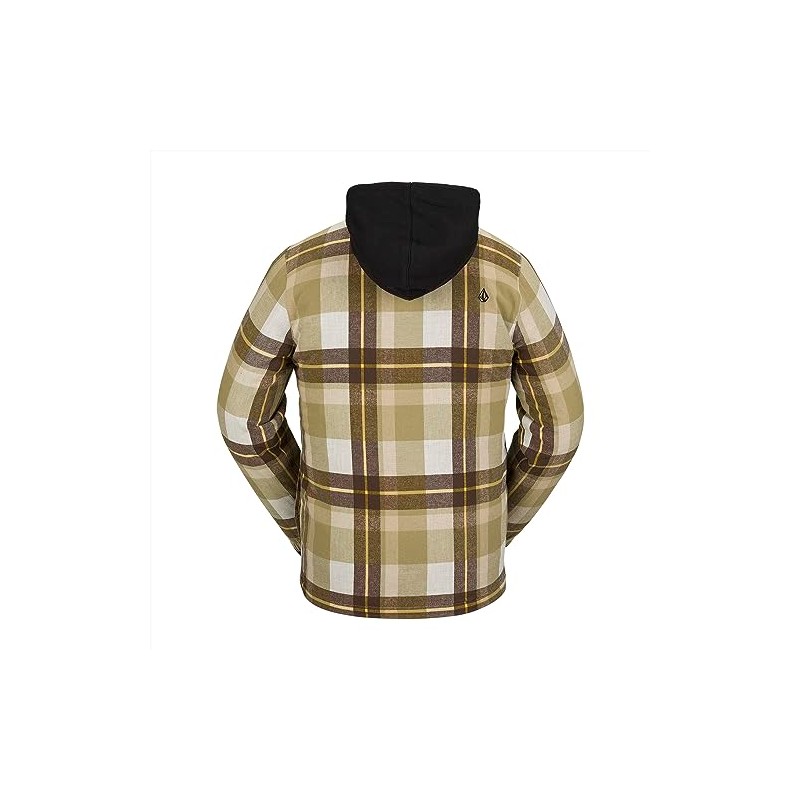 Volcom Men's Field Insulated Flannel Hooded Snowboard Shirt Jacket, Khakiest S4