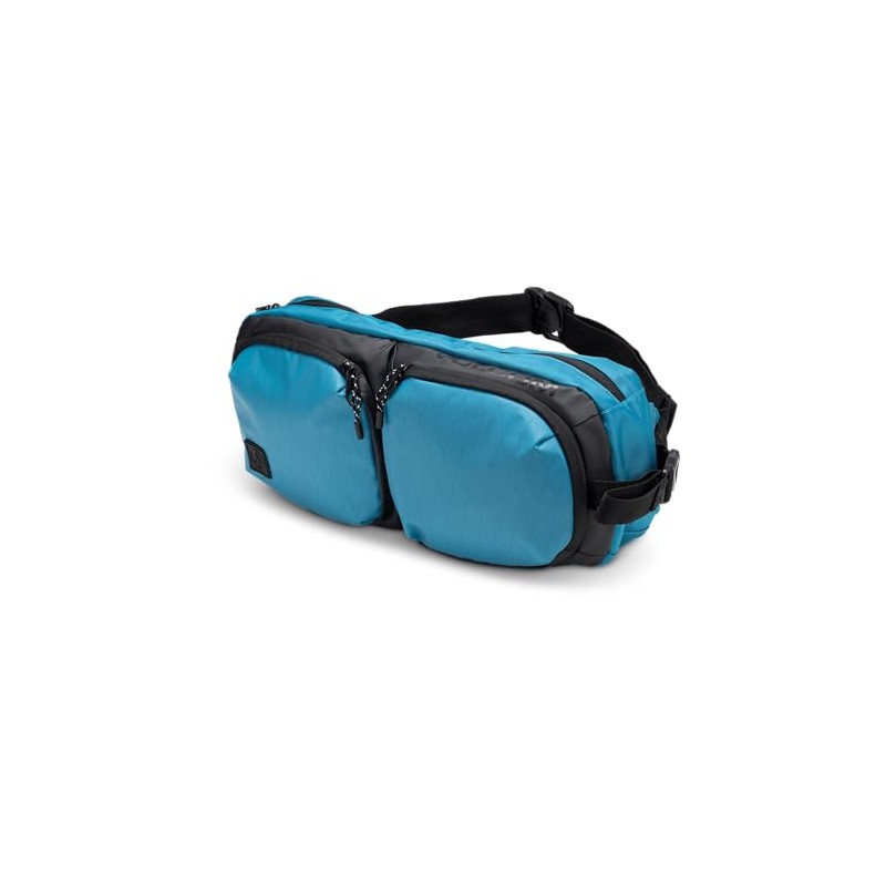 - 4 compartment crossbody sling with end compression cinch strap and double front zipper entry pockets w/ internal organization