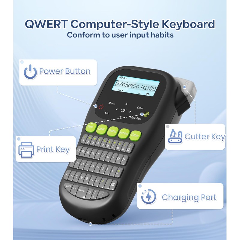• Computer Style Keyboard: For long-term use, H1100 portable printer features a QWERTY keyboard useing soft and sturdy keycaps, which prioritize durability over quick editing