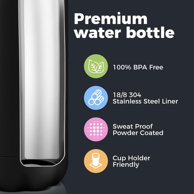 - 【Double Wall Vacuum Insulation】 Enjoy 24+ hours of ice-cold drinks and 12+ hours of hot beverages with our premium vacuum insulated bottle, crafted from 18/8 food-grade stainless steel