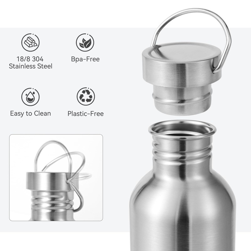 - 【Eco-Friendly & Sustainable Choice】Made from 304 (18/8) stainless steel, our single-wall water bottles are 100% BPA-free and plastic-free—a healthier choice for you and the planet. (Note: Single-wall design has no insulation—use caution with hot liquids)