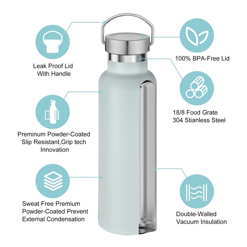 Volhoply Fog Stainless Steel Water Bottles,600 ML Vacuum Insulated Double Wall Travel Bottle with Leak Proof Lid of Handle,Metal Reusable Standard Mouth Flask Thermoses for School,Hikers,Gift
