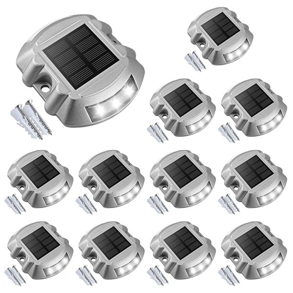 VOLISUN Solar Deck Lights Driveway Dock Lights, 12-Pack Led IP67 Waterproof Outdoor Warning Step Lights for Driveway Sidewalk Garden Pathway Yard(White)