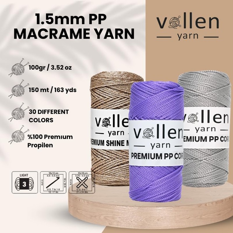 - 【Bring Your Imagination to Life with Easy Use】: VollenYarn macrame yarns are designed for easy use, easy to wash and wipe clean, and stain resistant, so they can be used in all kinds of macrame projects. They can also be used in your kitchen as coasters, tablecloths, serving plates, etc. You can use them anywhere.