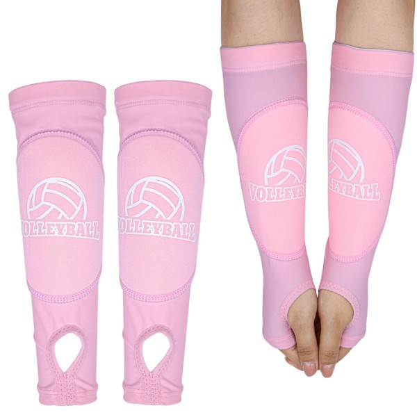 Volleyball Arm Sleeves with Passing Protection Forearm Pads, Pink Hitting Forearm Sleeves Padded Volleyball Sleeve with Thumb Hole for Youth Girls Kids, 1 Pair