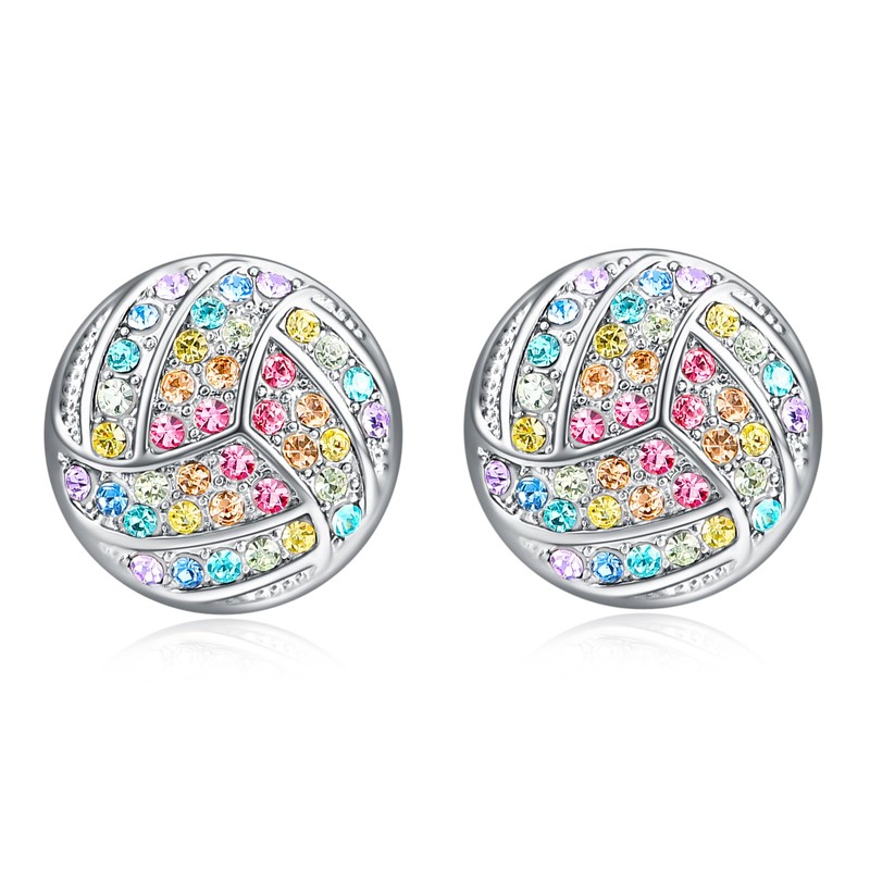 Dainty Volleyball Earrings:The metal of earrings is brass with a SMALL SIZE of Volleyball:0.51",allowing it easily to match with any outfit from casual to formal.The Volleyball stud earrings were plated with white gold and glued with sparkling rhinestone,making it very eye-catching and sparkling.