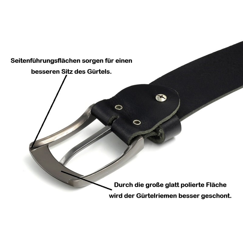 - Stylish and comfortable: The 38 mm wide, black leather makes a timeless and elegant impression. As the belt is quite strong and wide, it does not slip off the hip. The finely brushed buckle is traditional and easy to use. It protects the leather with its rounded edges and smooth surfaces.