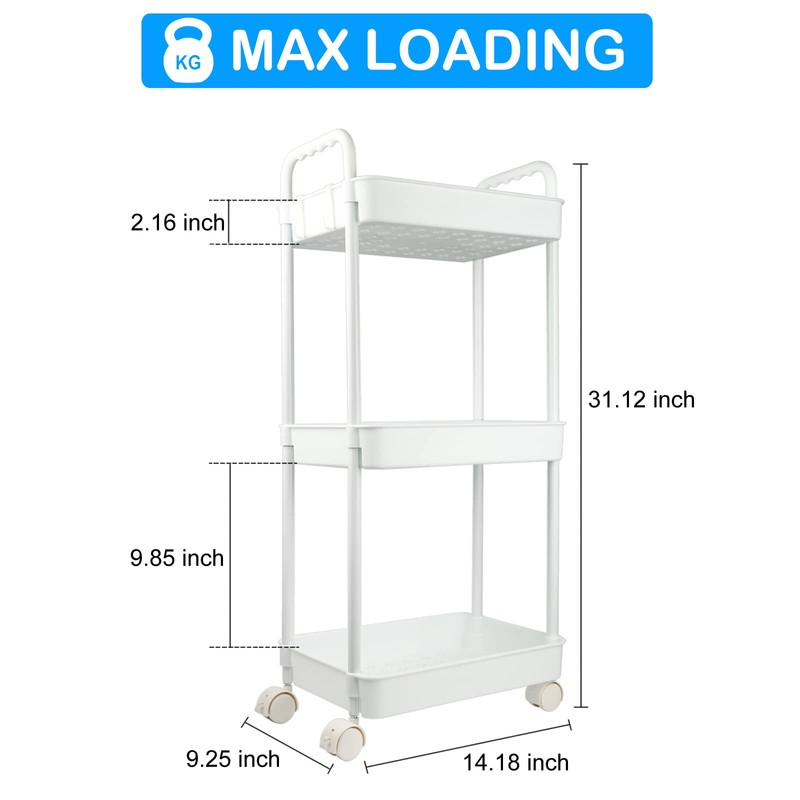 - Large Capacity ➤ This storage cart is made of ABS material mesh frame and sturdy pipe and doesn't take up much space, size 14.18 x 9.26 x 31.13 inches. With this 3-tier diaper cart, it can hold plenty of diapers, wipes, clothes, toys, and more. No more running back and forth to the nursery or changing tables!