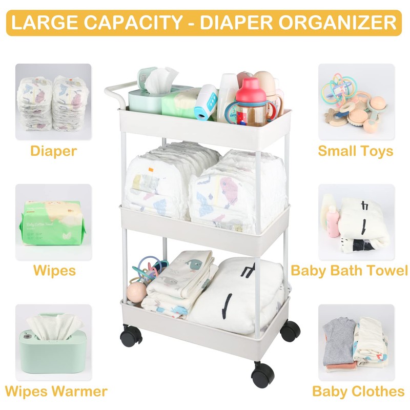 • Sturdy & Durable: This diaper cart organizer with wheels is designed with a 3-tier ABS material tray and sturdy pipe, with great loading. Waterproof and anti-corrosion