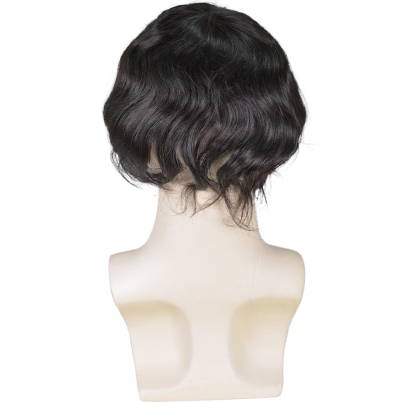 Voloria Men's Hairpiece European Human Hair Toupee 9x7inch Swiss Lace Skin PU Back Hair Replacement Wig 1B Black Color