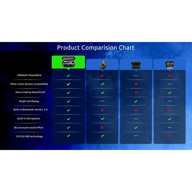 • ⚡【COOL LED SCREEN】 : Simple, Easy to Read Bluetooth LED display will clearly show the accurate power level of the charging box and the earphone, this way you can better arrange the future management of the headset, and will not worry about the earplugs without power/electricity.