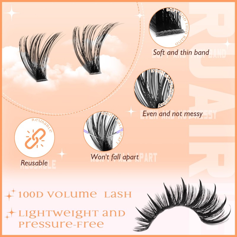 - Ruairie Cluster Lashes kit: Our brand is dedicated to crafting high-quality false eyelashes cluster, with your beauty experience at the core of everything we do. For any eyelash clusters kit-related questions, we provide professional guidance.Thank you for choosing Ruairie lash clusters!