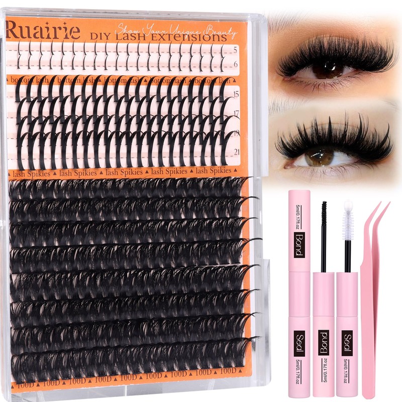 - Three-Style Salon-Grade Lash clusters kit: Ruairie individual eyelash extensions kit includes 160pcs voluminous lashes clusters, 80pcs spike lashes, and 40pcs bottom lashes. These three styles deliver salon worthy quality—feather-light, long-wearing, and irresistibly natural.