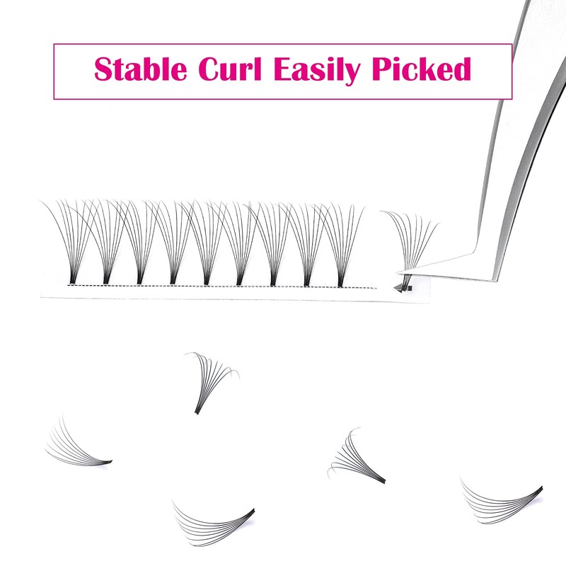 - 3. Stable Curl: These premade lash fans have been double heated during manufacturing to have the flexibility resembling a natural lash so holding the perfect curl and not easy to lose their curl.