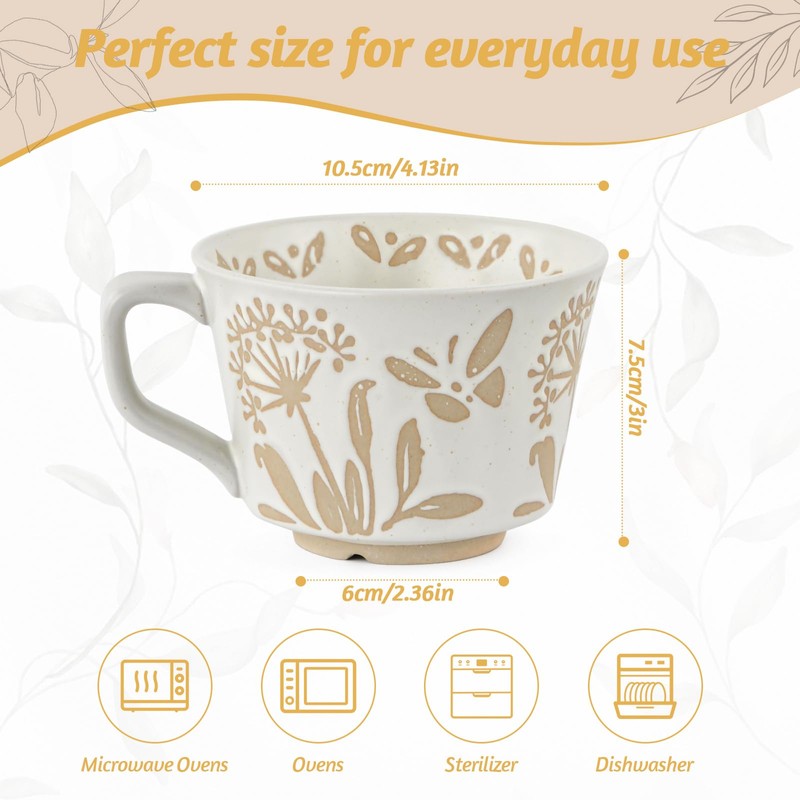 - 【Praktikabilität trifft auf Haltbarkeit】 Mit einem beachtlichen Fassungsvermögen von 340 ml sind diese Tassen für den täglichen Gebrauch konzipiert und bieten Haltbarkeit und Funktionalität für Ihren Morgenkaffee oder Nachmittagstee. Sie können sicher in der Mikrowelle, im Ofen, in der Spülmaschine und im Gefrierschrank verwendet werden.
