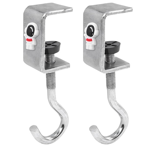 Volumoon Desk Mount Bag Hooks, 2Pcs Portable Bag Holder for Table, Clamp-On Desk Schoolbag Hook, Adjustable Metal Clip Hook, for Headsets, Umbrellas, Backpacks, Hats, Handbags(Silver)