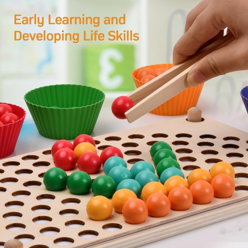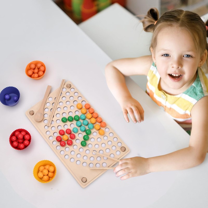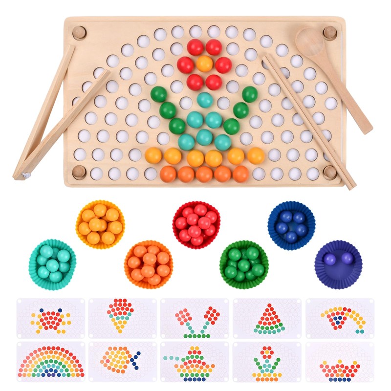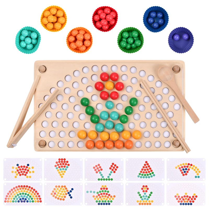 volumoon Rainbow Clip Beads Board Game, Montessori Toy, Clip Beads Puzzle Board Games