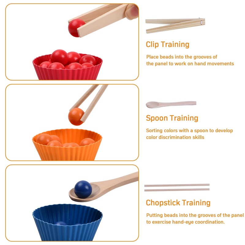 - Hands-on ability: The bead cutting game can not only train children's daily skills in handling chopsticks and spoons, but also train baby's fine hand movements and improve hand-eye coordination.