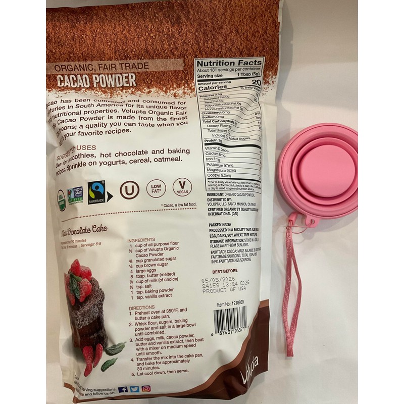 HealthEmpire Volupta Organic & Fair Trade Cacao Powder,Gluten Free, Excellent Source of Copper, Net Wt 32oz (Pack of 1, 1, Count)
