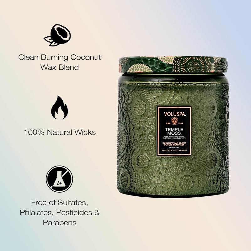 Voluspa Temple Moss, Two Wick Luxe Candle Jar, 44 oz, Coconut Wax Blend, Scented Candles for Home, 140 Hour Burn Time, Poured in the USA