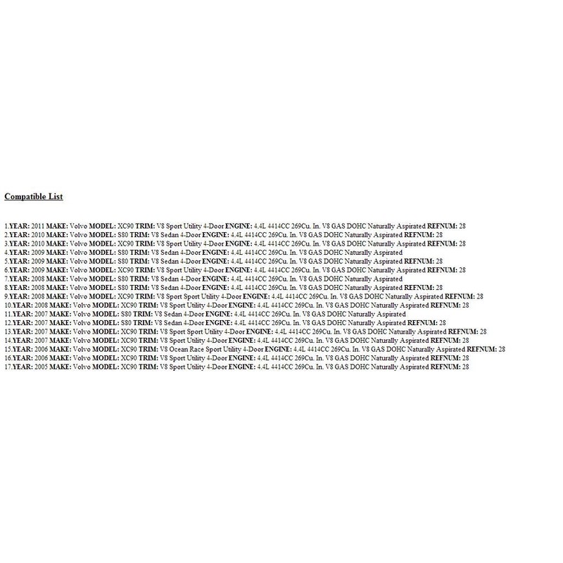 - Manufacturer Part Number:31251856, Category 3:Crankshaft & Bearings, Other Part Number:30720132, Part Ref# On Diagram:ONLY PART REFERENCE #28 ON THE DIAGRAM I, Placement On Vehicle:Rear