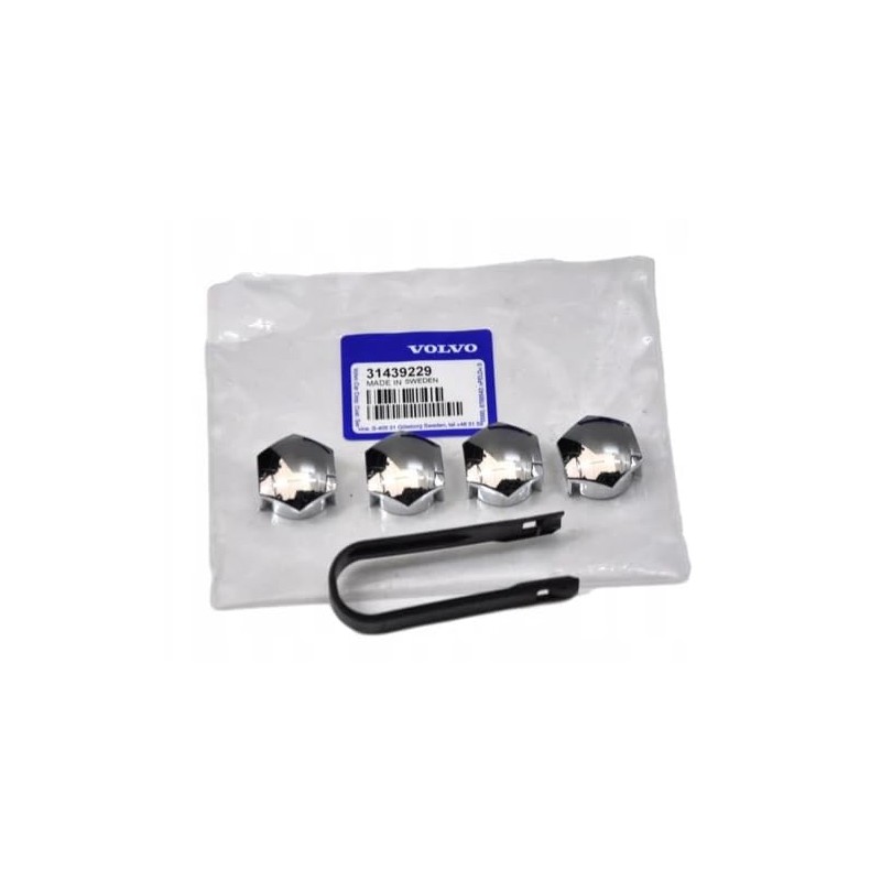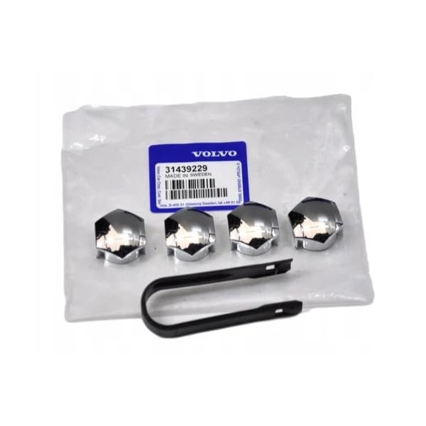 Volvo Lug Nut Protective Cap Kit, 4 Pieces with Installation Tool, OEM Factory Original, Universal Fit (Chromed 31439229)