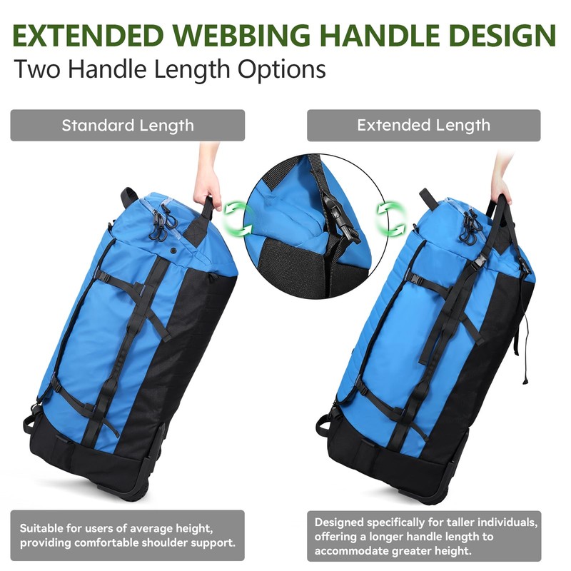 Vomgomfom 86L Collapsible Wheeled Luggage With Removable Backpack Straps,Waterproof Rolling Duffle Bag with Quilted Base,Blue