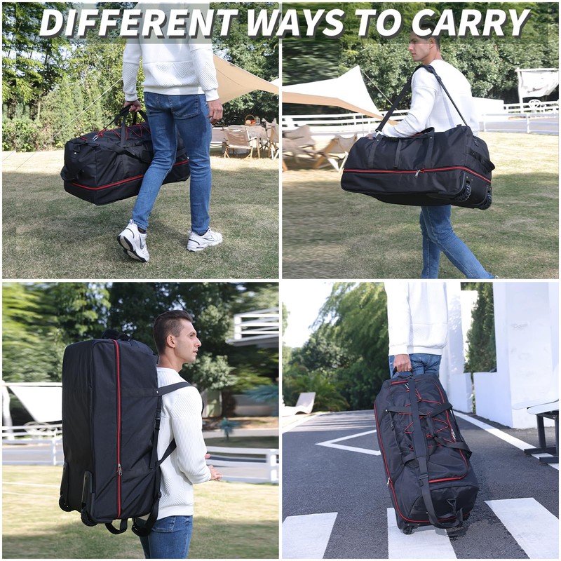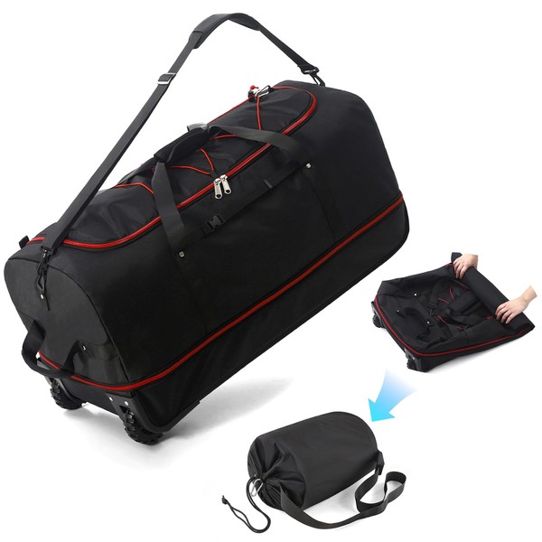 Vomgomfom Expandable from 110L to 140L 31.5" Rolling Duffle Bag with 2 Wheels,Foldable Travel Duffel Bag with Large Convertible Compartment Pocket,Black Red