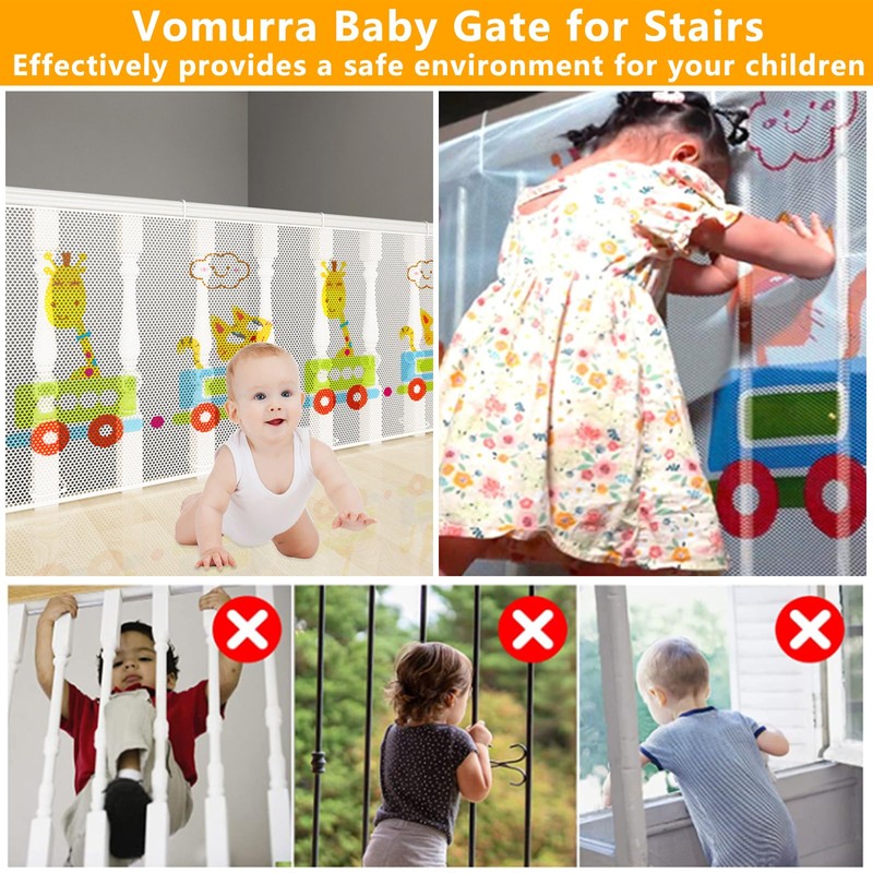 Vomurra Baby Banister Guard for Stairs,31.5'' X 236'' Stairway Net,Magic Safety Gate for Kids, Pets, Toys,Baby Safety Net Balcony,Easy to Install Stair Net for Child,Pet,Toy Indoor and Outdoor