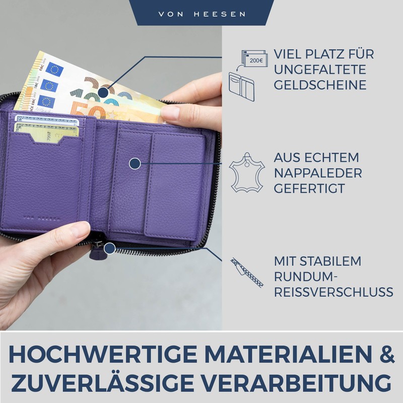 VON HEESEN Leather Wallet for Men and Women, Violet, 1 main compartment