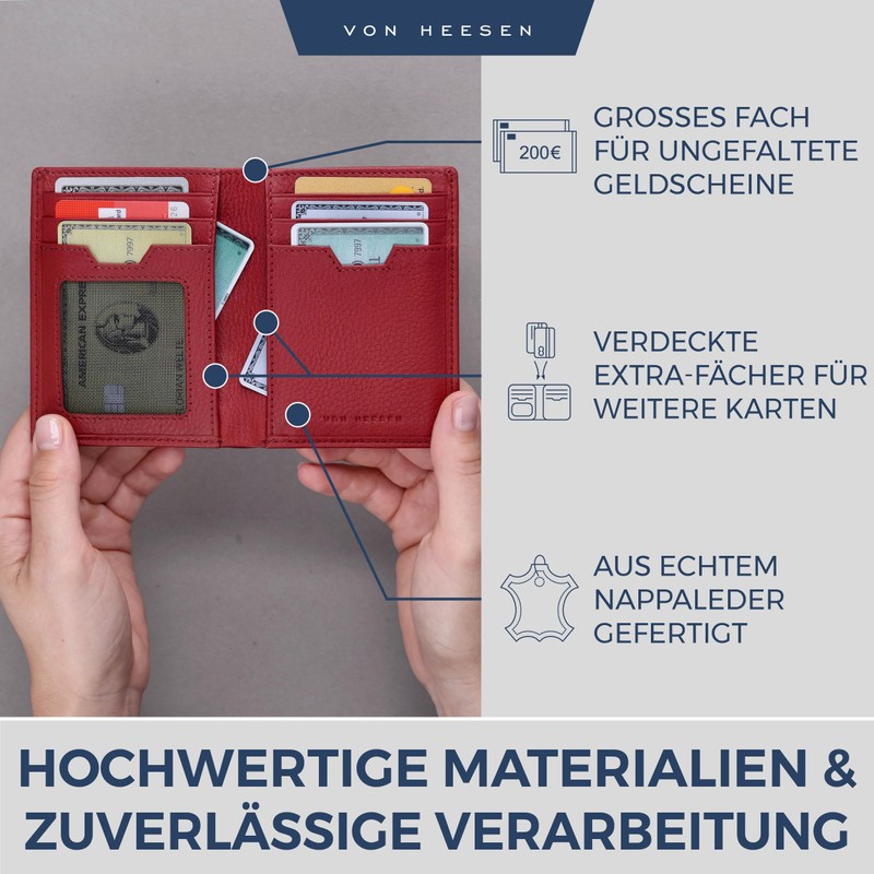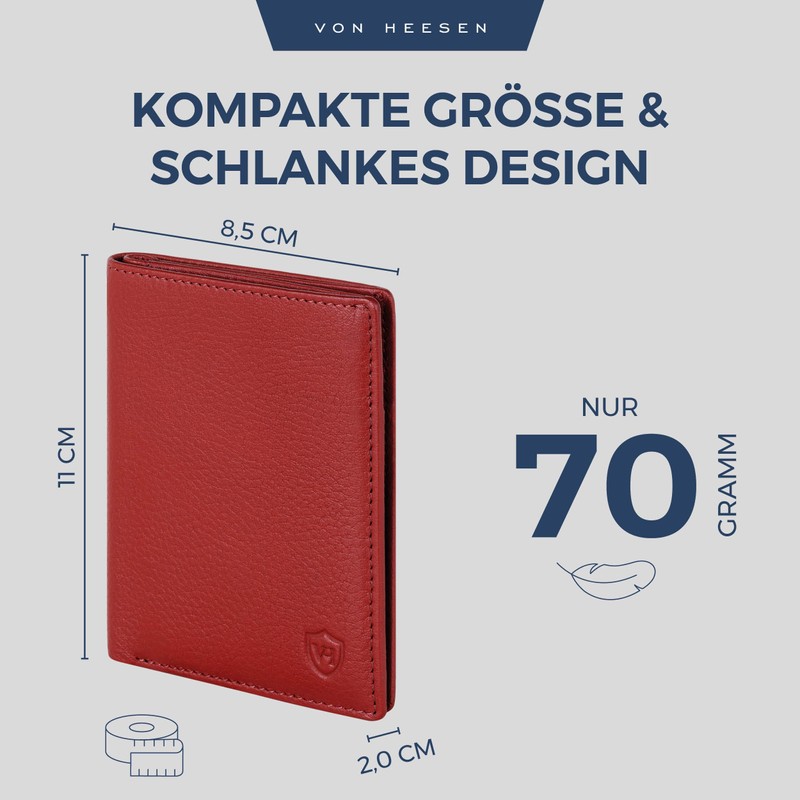 VON HEESEN® Men's Leather Wallet with Coin Compartment and RFID Protection, Genuine Leather Wallet for Men and Women, Wallet, red, With mini coin compartment