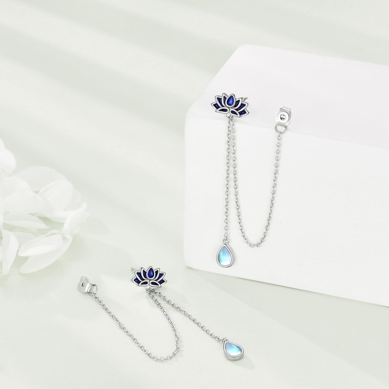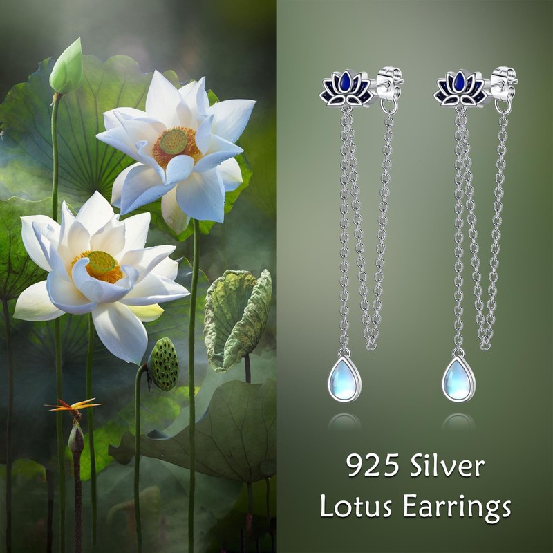 - 【Top material combination】: Our lotus chain stud earrings are made of 925 sterling silver, with an excellent polishing process, Each piece is beautifully crafted with a nice texture; They are reliable and skin-friendly, lightweight, and won't add a burden to your ear, comfortable to wear and suitable for long-term wearing.