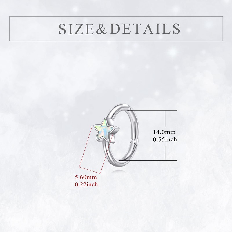 VONALA Star Nose Ring 925 Sterling Silver Opal Piercing Hoop Ring 14 mm Jewellery Gift for Women, Sterling Silver, No gemstone