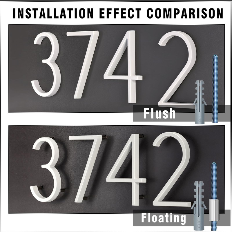 - Versatile Mounting Options: Our house numbers offer flexible mounting choices; select flush mounting for a streamlined appearance or floating installation for a modern touch; tailor the look to match your personal style and architectural design of your home