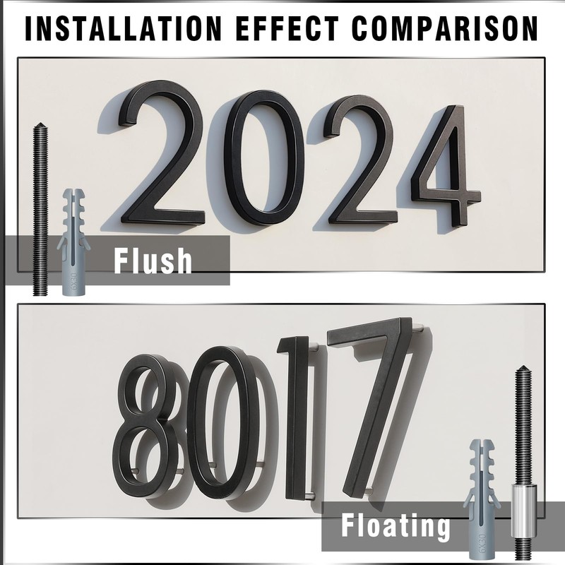 - Enviable Appearance: These modern house numbers for outside inherently possesses beautiful, clean, and elegant features; you can use two installation methods, floating and flush, for creative DIY; it's perfect for adding charm to every corner of your yard, including the fence, front porch pillars, garage, and door; your neighbors will be envious when they see it
