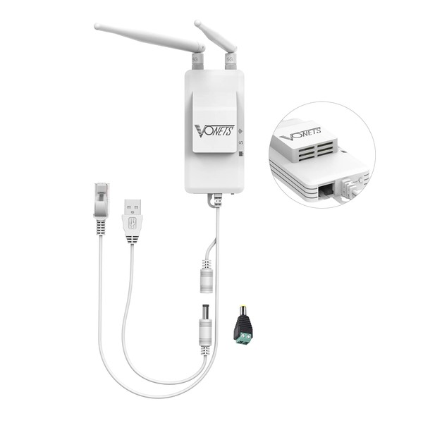 - Better WiFi signal: the Ethernet wireless adapter comes with 2 adjustable external smart WiFi antennas that receive a stronger WiFi signal than the internal antennas, supports WiFi 802.11a/ac/n, WiFi rate: 900Mbit/s; two adaptive 10/100Mbps Ethernet ports (1 RJ45 socket and 1 cable with RJ45 connector).