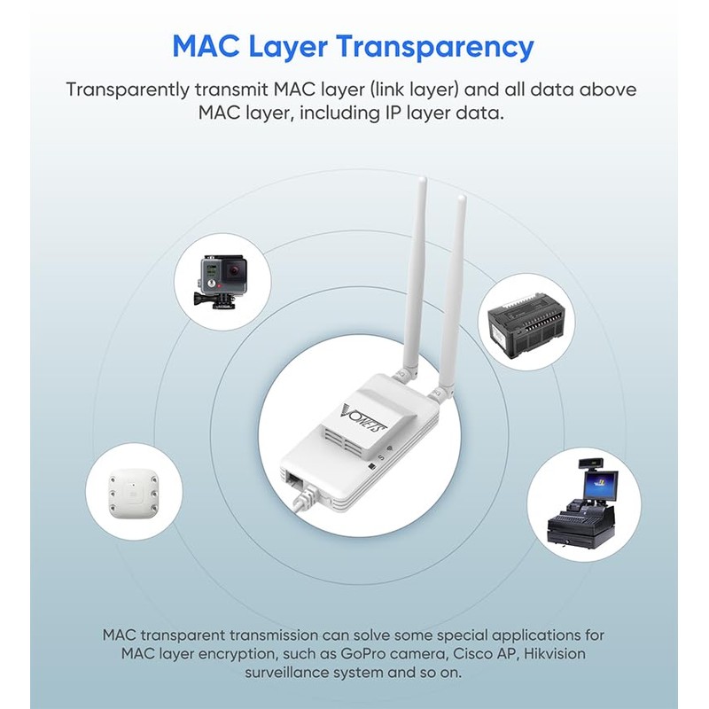 8. Supports IP layer transparent transmission and MAC layer transparent transmission.