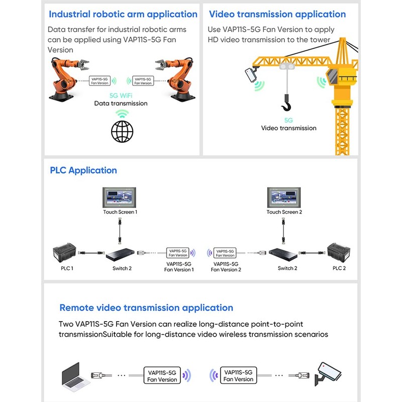 - Smart cooling fan for heat dissipation: this device is a mini high-power 5GHz WiFi bridge/repeater/router, small size, high power leads to VAP11S-5G heat, with intelligent automatic start and stop of the fan: after 5-10 minutes of normal operation, the fan cooling function will be automatically switched on, and the mini wireless bridge for intelligent automatic start and shutdown of the fan