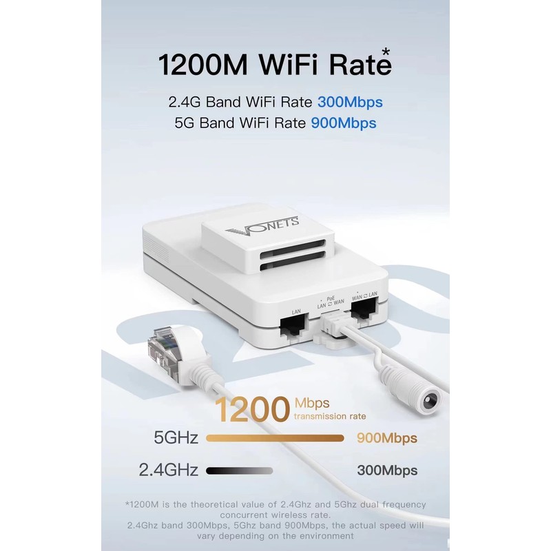 VONETS Gigabit PoE Dual Band 2.4GHz/5GHz WiFi Bridge Wireless Router Ethernet Repeater/WiFi RJ45 Adapter Range Extender 3 Gigabit PoE/DC for Industrial PLC IoT Telescope Network Devices VAR1200-L
