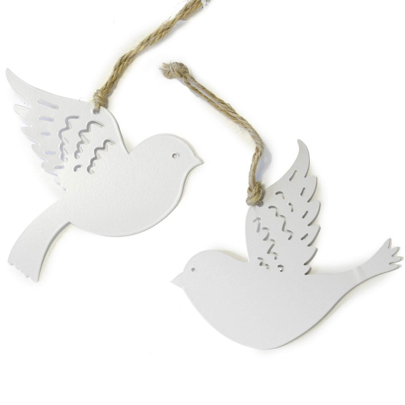 vonHermine Decorative Hanging Bird Flower Hanger Set of 2 Metal 10 cm Spring White